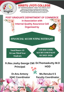The “Certificate Course on Financial Accounting using GST” is designed to provide practical knowledge of computerized accounting. The course helps learners understand accounting principles and apply them using Tally Prime for efficient financial record management. The course introduces learners to the basic concepts of financial accounting along with the structure and functioning of GST in business transactions. It helps students understand GST registration, tax calculation, invoicing, and return filing procedures.