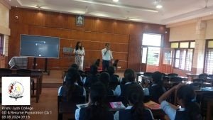 Commerece department organized a Resume Preparation Session ‘Effective Resume on 08/08/2024 (9.15 am to 1.15 am) for the students of B. Com Computer Application Batch 1 Semester 5. The session aimed to equip students with essential skills for creating impactful resumes, which are crucial tools in the job search process. The workshop was led by Mrs. Devi Sundar a Career Counsellor with extensive experience in career development and recruitment. The four-hour session helped the students to acquire informative knowledge about an effective resume preparation which covered the meaning of resume, key components of resume, how to tailor an effective resume and also about the common mistakes that should be avoiding while preparing a resume such as overwriting, poor layout choices etc. The session also focused in building the developing the communicating skills, leadership skills etc.