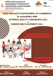The Group Discussion & Interview Techniques Programme is designed to prepare final year BCom students for the challenges of group discussions and personal interviews, which are critical components of the recruitment process. This initiative aims to enhance students’ communication skills, critical thinking abilities, and confidence to excel in group settings and one-on-one interviews. The Programme Include :