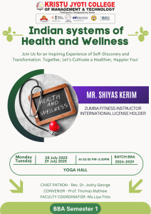 The Post Graduate Department of Management Studies, in association with IQAC of Kristu Jyoti College of Management and Technology, Changanacherry, organized a Zumba training programme on 28th and 29th July 2025 as part of the induction programme for BBA Semester I students, with 57 participants attending the offline sessions. Coordinated by Ms. Liya Titto, the programme was led by Mr. Shiyas Kerim, an internationally licensed Zumba fitness instructor. Conducted at the Yoga Hall from 2.00 p.m. to 3.30 p.m., the sessions aimed to promote awareness about health, fitness, and overall wellness among students through engaging and energetic Zumba exercises. The interactive sessions provided valuable insights into maintaining a healthy lifestyle and overcoming common health issues, while also encouraging active student participation. Feedback from participants was highly positive, with students expressing enthusiasm and appreciation for the informative and practical nature of the programme. Overall, the initiative successfully enhanced students’ understanding of the importance of physical fitness and wellness, contributing to improved awareness, better learning readiness, and holistic development.