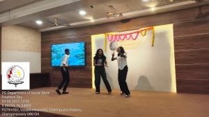 The PG Department of Social Work organized a Cultural Fest as part of Bhumika 2.0 Rural Camp from 29th September to 3rd October 2025 at Pozhiyoor, Thiruvananthapuram District, to promote community engagement and social awareness. Students of BSW Semester 1 and 3 presented folk performances, skits, songs, and traditional dances reflecting Indian culture and addressing themes such as environmental conservation, education, gender equality, and community health. Held within the local coastal community, the event encouraged active participation from residents, school students, and Self Help Groups. Coordinated by Ms. Riya Tomy with the support of faculty members, the fest was widely appreciated for its creativity and social relevance, strengthening community ties while fostering experiential learning and leadership among students.