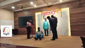 The PG Department of Social Work, as part of its rural camp initiative, organized a community program on 29th November 2024 at Kuluthupuzha in Kollam District, focusing on the Kadamankode tribal community. The program aimed to foster community engagement, celebrate local traditions, and create a platform for the Kadamankode tribe to share their cultural heritage. The event was held in the heart of Kuluthupuzha, where the community gathered to participate in a day of cultural exchange and mutual learning. One of the key aspects of the program was the active participation of the Kadamankode tribal community, who presented their traditional art forms, including Kaikottikali (a traditional folk dance), regional songs, and a figure show led by Mr. Dinesh, a prominent community member. The program emphasized the importance of preserving and promoting indigenous cultural expressions while providing an avenue for the community to showcase their talent and heritage to a wider audience. The event was attended by local community members, including elders, youth, and children, as well as students and Principal, faculity from the PG Department of Social Work. The performances not only brought attention to the cultural richness of the Kadamankode tribal community but also served as a reminder of the significance of community-driven initiatives in preserving indigenous tradition.