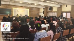 The PG Department of Social Work at Kristu Jyoti College of Management and Technology organized talent day named “Lumina” on 8 august 2024, from 2 pm to 4 pm at conference hall. A total of 35 students and 4 faculty members attended the program. The objective of a Talent Day is to identify, showcase, and celebrate the diverse skills and abilities of our students. It provides a platform for participants to demonstrate their talents, fostering a sense of recognition and encouragement. The event commenced with heartfelt prayer song performed by the department choir team. TSW Sreya B delivered the welcome speech, warmly greeted attendees and outlined the significance of the event. The highlight of the event was the Presidential Address by Rev. Fr. Joshy Cheramkuzhy, CMI, father pointed that talent day can serve as a way to build team spirit, promote creativity, and inspire others to explore and develop their own potential. The official program was concluded with vote of thanks by TSW Fyruza Rahim.