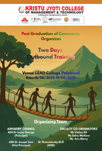 Post Graduate Department of Commerce, Kristu Jyoti College of Management and Technology, Changanacherry organized a Two Day Out Bound Training Program on 5/11/24 to 6/11/24 at Lead College Palakkad. The journey stared from college at 5.30 pm with 59 students under the guidance of Ms. Anu Eappen, Ms. Jeremy Jain Babu, Mr. Deepu C Vijay and Ms. Sruthymol Joseph Assistant professors, Post Graduate Department of Commerce